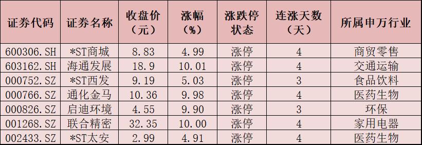連續(xù)上漲3日且今日收盤漲停個(gè)股情況