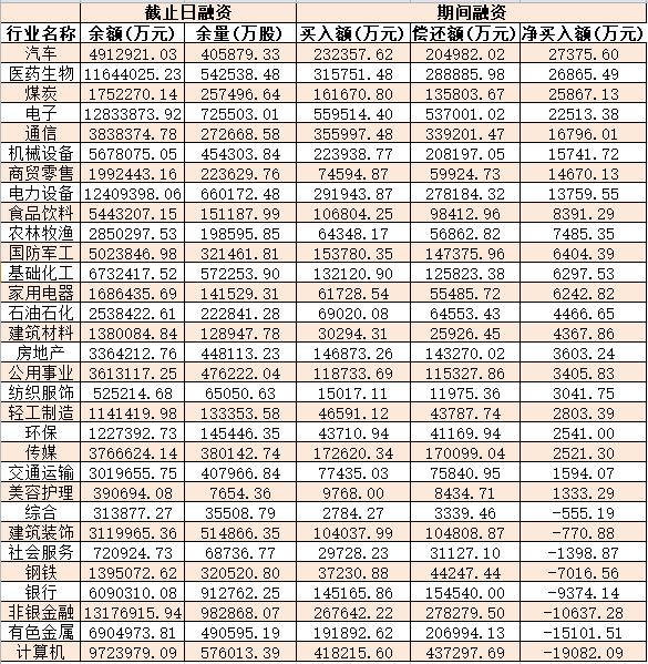 表:9月14日申萬一級(jí)行業(yè)兩融交易情況: