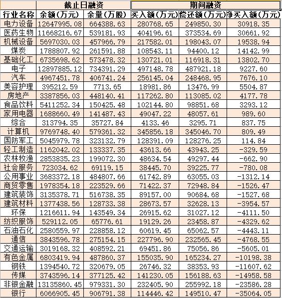 表:9月19日申萬一級行業(yè)兩融交易情況: