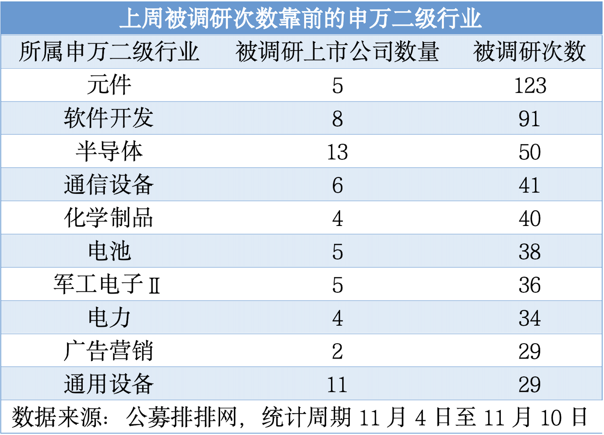 (上周被調(diào)研次數(shù)靠前的申萬二級行業(yè))