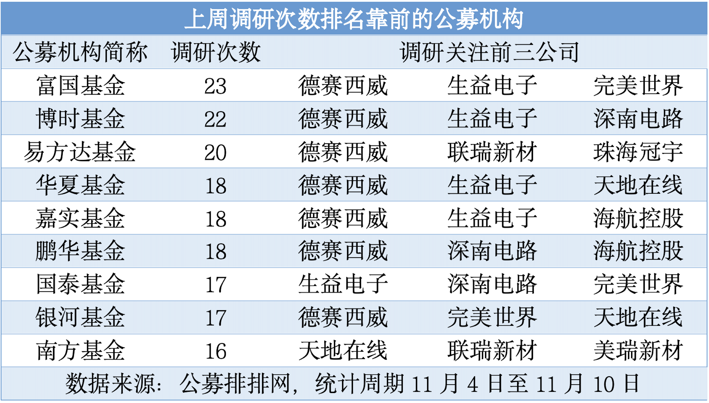 (上周調(diào)研次數(shù)排名靠前的公募機(jī)構(gòu))