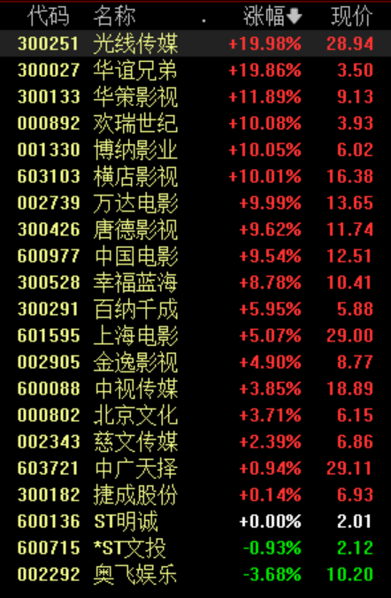 (影視院線板塊多股漲停/截圖來(lái)自同花順)