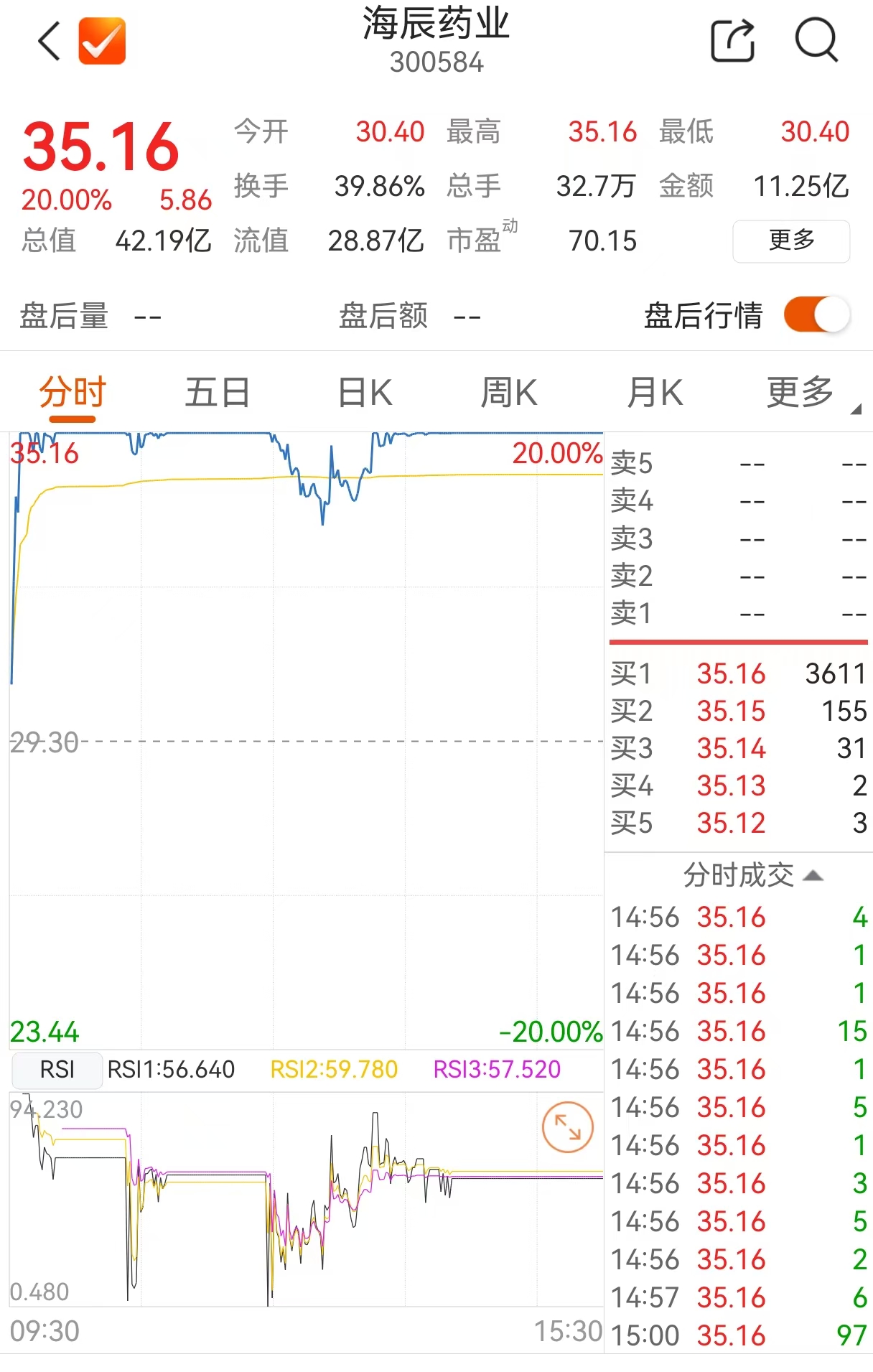 5月23日,創(chuàng)新藥板塊強勢爆發(fā),截至收盤,南京海辰藥業(yè)股份有限公司(簡稱“海辰藥業(yè)”;股票代碼300584)20cm漲停,廣東眾生藥業(yè)股份有限公司漲停,北京陽光諾和藥物研究股份有限公司漲超12%。