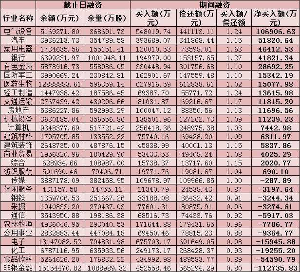 六、截至12月15日申萬級一級行業(yè)兩融交易情況