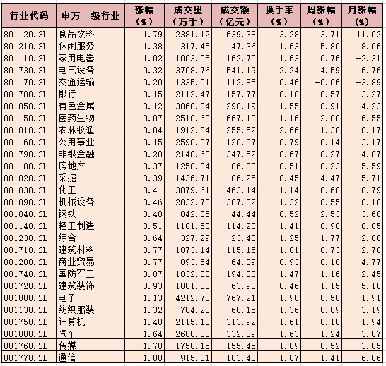 表:12月16日申萬一級(jí)行業(yè)指數(shù)表現(xiàn)一覽