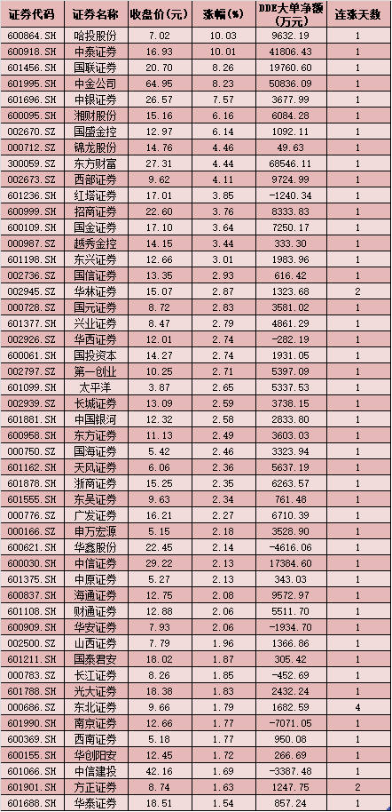 12月17日,券商板塊漲幅達到3.35%,板塊內成份股全線飄紅,哈投股份、中泰證券等兩只個股聯袂漲停,國聯證券、中金公司、中銀證券、湘財股份、國盛金控、錦龍股份、東方財富、西部證券等個股漲幅也均在4%以上。