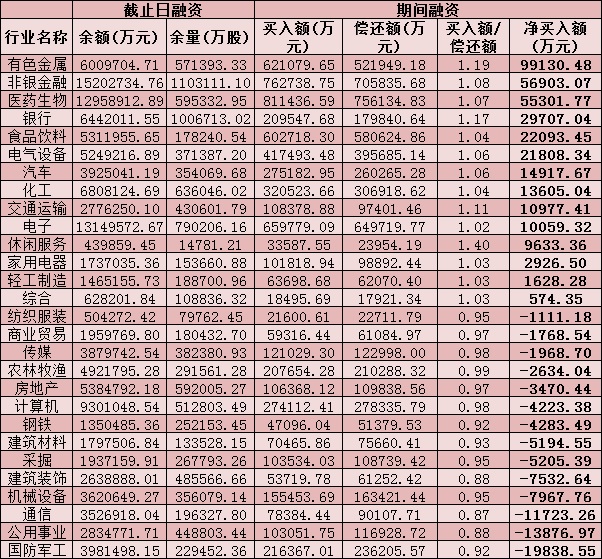 六、截至12月17申萬級一級行業(yè)兩融交易情況