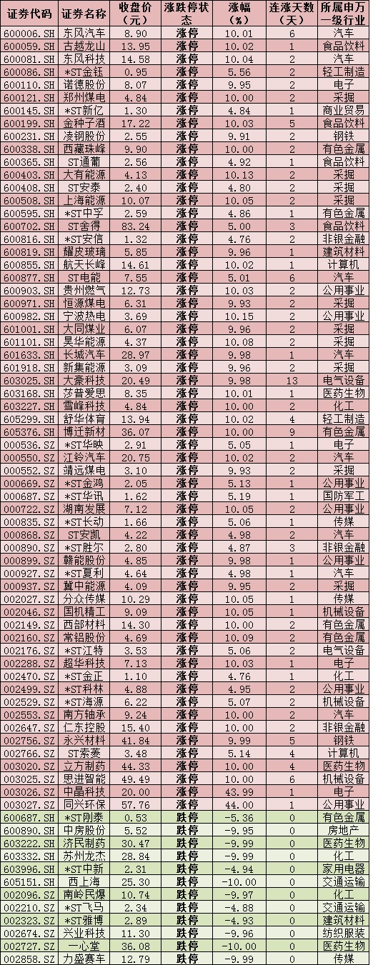 三、周五(12月18日)漲跌停股