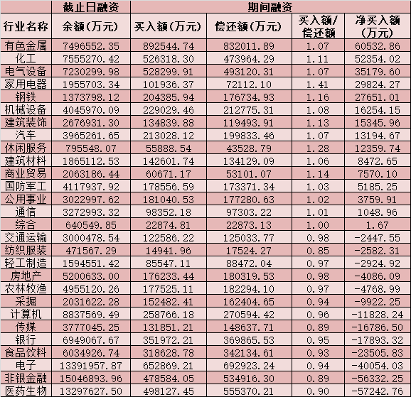 六、截至3月3日申萬(wàn)級(jí)一級(jí)行業(yè)兩融交易情況