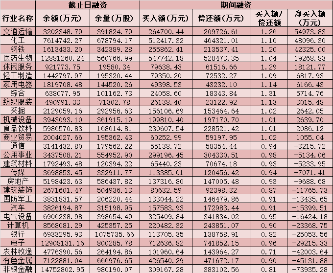 六、截至4月12日申萬級(jí)一級(jí)行業(yè)兩融交易情況