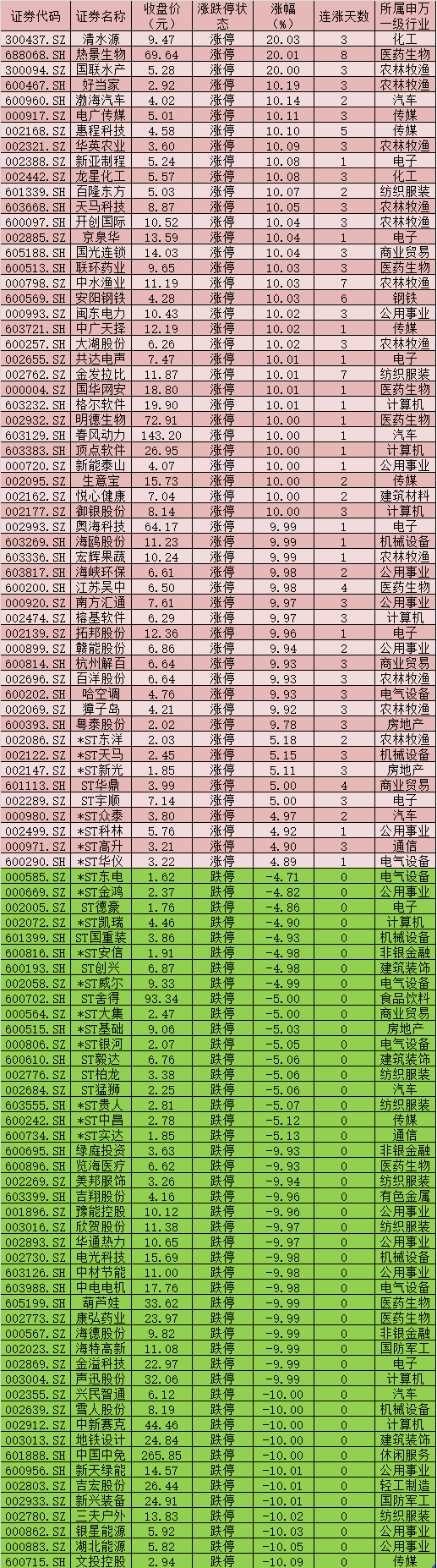 三、周二(4月13日)漲跌停股