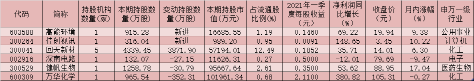 良好的業(yè)績(jī)表現(xiàn)或許是QFII今年一季度持倉(cāng)的重要?jiǎng)恿?。統(tǒng)計(jì)顯示,上述6家公司中,除深南電路今年一季度凈利潤(rùn)出現(xiàn)同比下降之外,其余的5家公司今年一季度凈利潤(rùn)均實(shí)現(xiàn)同比增長(zhǎng)。萬(wàn)華化學(xué)、佳創(chuàng)視訊報(bào)告期內(nèi)實(shí)現(xiàn)凈利潤(rùn)同比翻番,高能環(huán)境、健帆生物、回天新材等3家公司2021年一季度凈利潤(rùn)也均實(shí)現(xiàn)同比增長(zhǎng)30%以上。