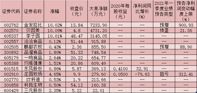 在政策大力支持下,乳業(yè)市場(chǎng)需求有望逐步釋放,帶動(dòng)相關(guān)上市公司基本面盈利持續(xù)改善。《證券日?qǐng)?bào)》記者根據(jù)同花順數(shù)據(jù)統(tǒng)計(jì)發(fā)現(xiàn),截至4月15日收盤,已有10家乳業(yè)板塊上市公司披露了2020年年報(bào)業(yè)績(jī),7家公司報(bào)告期內(nèi)實(shí)現(xiàn)凈利潤(rùn)同比增長(zhǎng),占比七成。新農(nóng)開(kāi)發(fā)、*ST麥趣2020年全年凈利潤(rùn)均實(shí)現(xiàn)同比翻番,金健米業(yè)、東風(fēng)股份、光明乳業(yè)等3家公司2020年全年凈利潤(rùn)也均實(shí)現(xiàn)同比增長(zhǎng)20%以上。