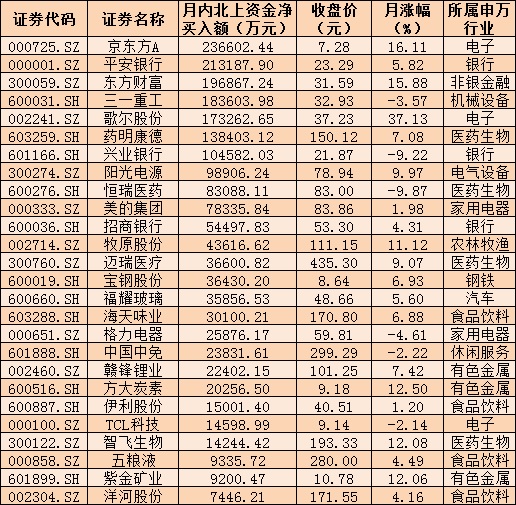 表:4月份以來北上資金凈買入的26只個(gè)股情況