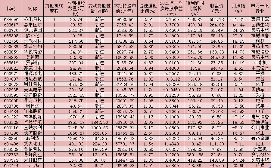 表:今年一季度獲養(yǎng)老金新進(jìn)增持的個(gè)股一覽