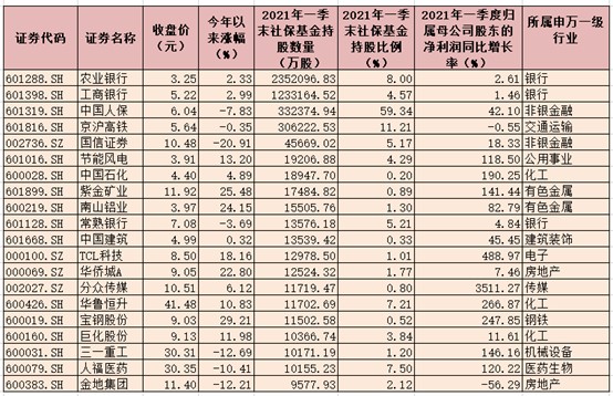 表:社保基金一季度末持倉股數(shù)前20股一覽