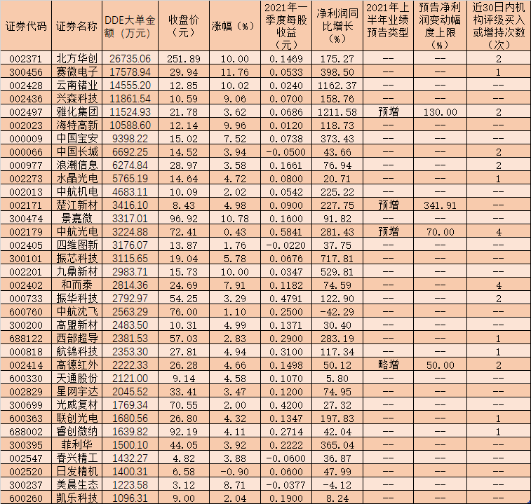 值得一提的是,市場做多資金也開始加倉航天軍工股,6月17日,航天軍工板塊中共有88只個股呈現(xiàn)大單資金凈流入態(tài)勢,其中,有34只個股大單資金凈流入超過1000萬元,合計吸金17.84億元。北方華創(chuàng)大單資金凈流入居首,達(dá)到2.67億元,賽微電子、云南鍺業(yè)、興森科技、雅化集團(tuán)、海特高新等4只個股當(dāng)日也均受到1億元以上大單資金搶籌。