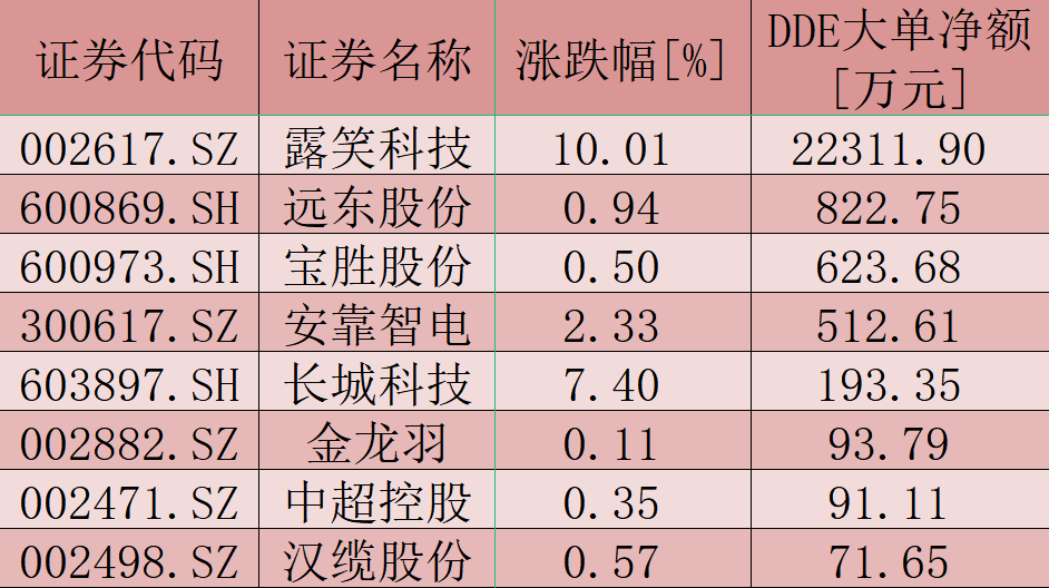 電線電纜板塊的行情也與資金面因素相關。同花順數(shù)據(jù)顯示,大單資金正積極搶籌部分電線電纜板塊個股。今日,共有8只個股獲2.47億元大單資金搶籌,露笑科技獲大單資金凈流入額最多,高達2.23億元;遠東股份、寶勝股份和安靠智電的大單資金凈流入額也達到500萬元以上,分別為822.75萬元、623.68萬元和512.61萬元。