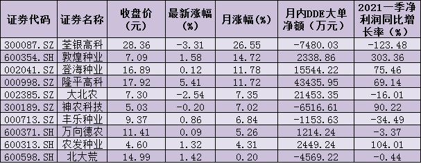 表:7月以來(lái)種業(yè)板塊個(gè)股表現(xiàn)情況一覽: