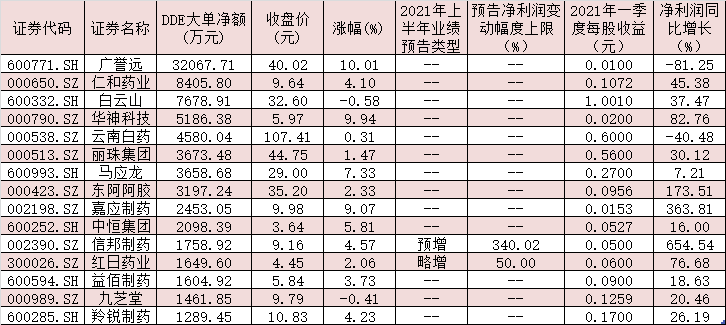 在政策紅利不斷釋放的背景下,中藥行業(yè)上市公司盈利進(jìn)一步提升。同花順數(shù)據(jù)統(tǒng)計(jì)發(fā)現(xiàn),在94家中藥行業(yè)上市公司中,今年一季度實(shí)現(xiàn)凈利潤(rùn)同比增長(zhǎng)的公司共有74家,占比近八成。截至目前,已有21家中藥行業(yè)上市公司披露了2021年上半年業(yè)績(jī)預(yù)告,19家公司業(yè)績(jī)預(yù)喜,占比逾九成。