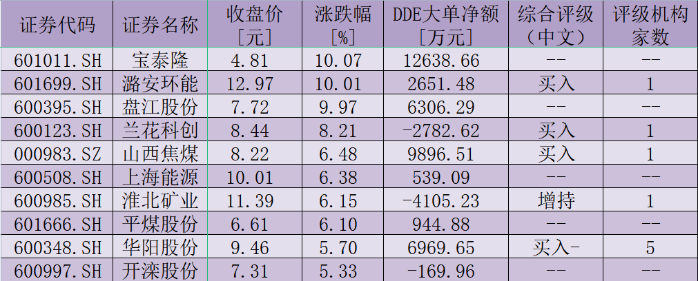 表:8月4日,煤炭開采加工板塊漲幅超過5%個股一覽