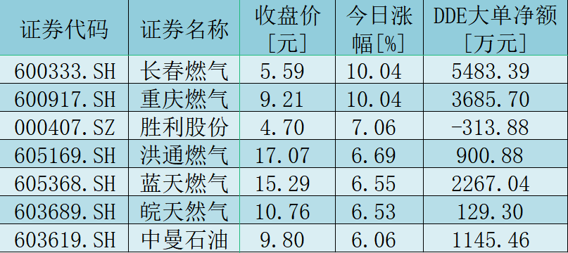 受國(guó)際油價(jià)反彈影響,A股油氣設(shè)服板塊今日漲幅較大,截至15:00收盤,油氣設(shè)服板塊上漲1.95%,跑贏上證指數(shù)漲幅(1.07%);個(gè)股方面,長(zhǎng)春燃?xì)夂椭貞c燃?xì)鉂q停;包括勝利股份(7.06%)、洪通燃?xì)猓?.69%)、藍(lán)天燃?xì)猓?.55%)、皖天然氣(6.53%)、中曼石油(6.06%)在內(nèi)的5只個(gè)股漲幅均超5%。