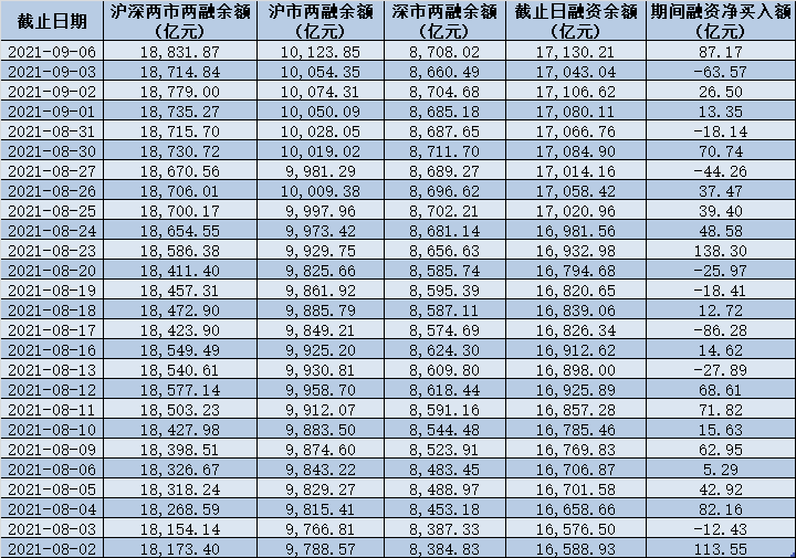 可以看到,截至9月6日,滬深兩市兩融余額報(bào)18831.87億元,再度刷新近6年高點(diǎn)。