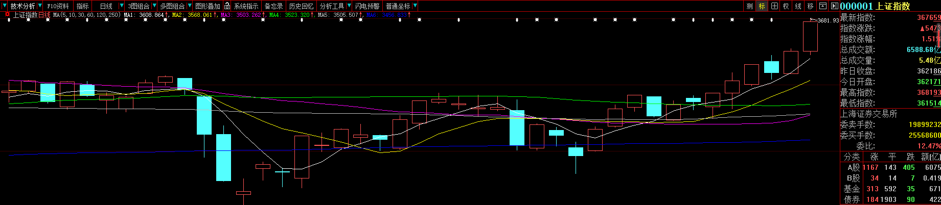 3681.93點(diǎn)!大藍(lán)籌集體發(fā)力,拉動(dòng)滬指漲幅持續(xù)擴(kuò)大,周二(9月7日)盤中創(chuàng)半年來(lái)新高。