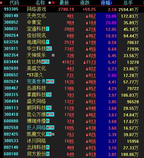 在此消息刺激下,游戲板塊也紛紛“回血”,天舟文化、中青寶等個(gè)股漲停,完美世界漲超4%。