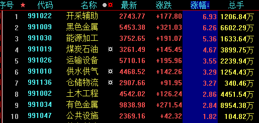 可以看到,傳統(tǒng)行業(yè)紛紛走強(qiáng)。首先,煤炭、有色以及鋼鐵等周期股近期迎來(lái)“加速跑”,成為市場(chǎng)最核心熱點(diǎn);其次,電力板塊也開(kāi)啟暴力反彈模式,周三收盤16只個(gè)股漲停;此外,中字頭板塊強(qiáng)勢(shì)上攻,其中建筑類標(biāo)的多數(shù)在短期內(nèi)大漲。還有,近期啟動(dòng)的油氣板塊,也是短期迎來(lái)集中式的拉升。