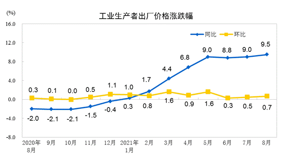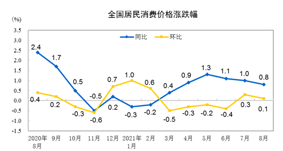周四,國(guó)家統(tǒng)計(jì)局發(fā)布了2021年8月份全國(guó)CPI(居民消費(fèi)價(jià)格指數(shù))和PPI(工業(yè)生產(chǎn)者出廠價(jià)格指數(shù))數(shù)據(jù)。
