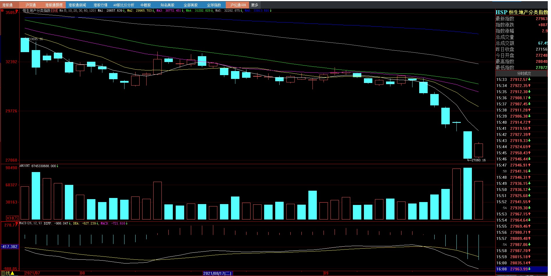在此影響下,我國香港股市周一也大幅下挫。恒生指數(shù)和恒生科技指數(shù)盤中跌幅一度超4%,截至收盤,恒生指數(shù)收跌3.3%報24099.14點,恒生科技指數(shù)跌2.8%。恒大物業(yè)跌11.3%,融創(chuàng)中國、中國恒大跌超10%,碧桂園跌超6%。京東跌超4%,快手跌近3%,美團、阿里巴巴跌超2%。