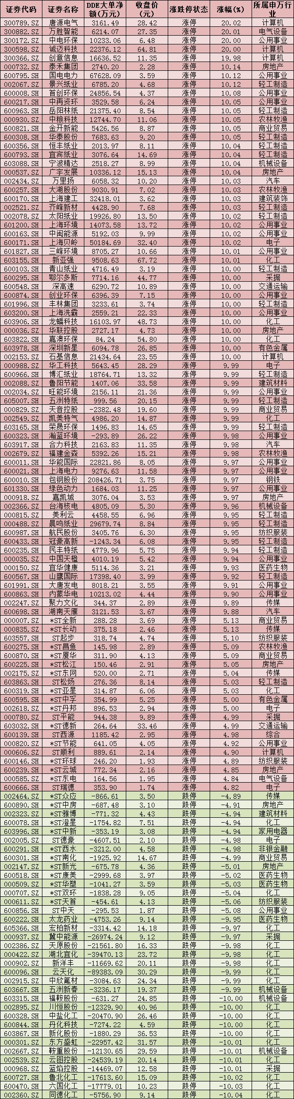 表:9月23日漲跌停個(gè)股情況