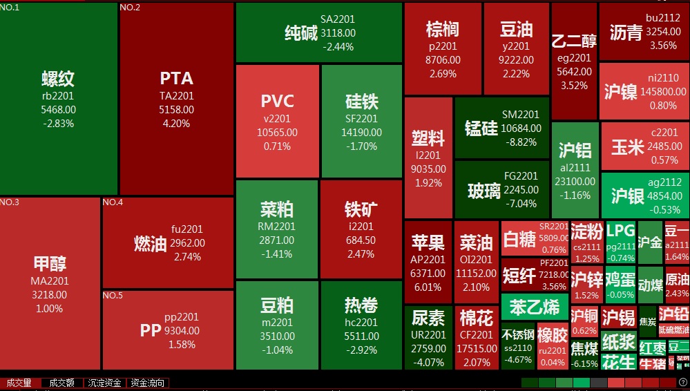 9月24日,國(guó)內(nèi)商品期貨收盤(pán)走勢(shì)分化,蘋(píng)果主力合約漲停,PTA漲超4%,短纖、瀝青、乙二醇漲超3%,燃油、棕櫚、鐵礦、原油、豆油漲逾2%。玻璃主力合約跌停,錳硅跌超8%,焦炭跌超7%,焦煤跌逾6%,不銹鋼、尿素跌超4%,螺紋熱卷、純堿、硅鐵跌超2%。