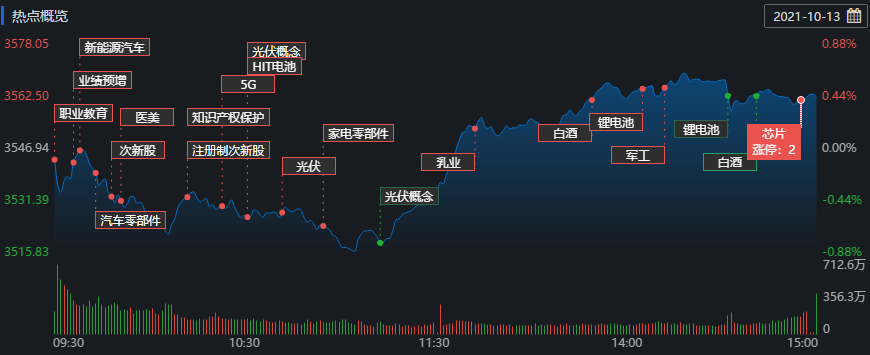 10月13日,A股三大指數(shù)探底回升,集體收漲,創(chuàng)業(yè)板指表現(xiàn)較強(qiáng)。截至收盤,上證指數(shù)漲0.42%,深證成指漲1.54%,創(chuàng)業(yè)板指漲2.29%;滬深兩市合計(jì)成交額8896.78億元;總體來看,兩市個(gè)股漲多跌少,漲停股80家,賺錢效應(yīng)偏強(qiáng)。