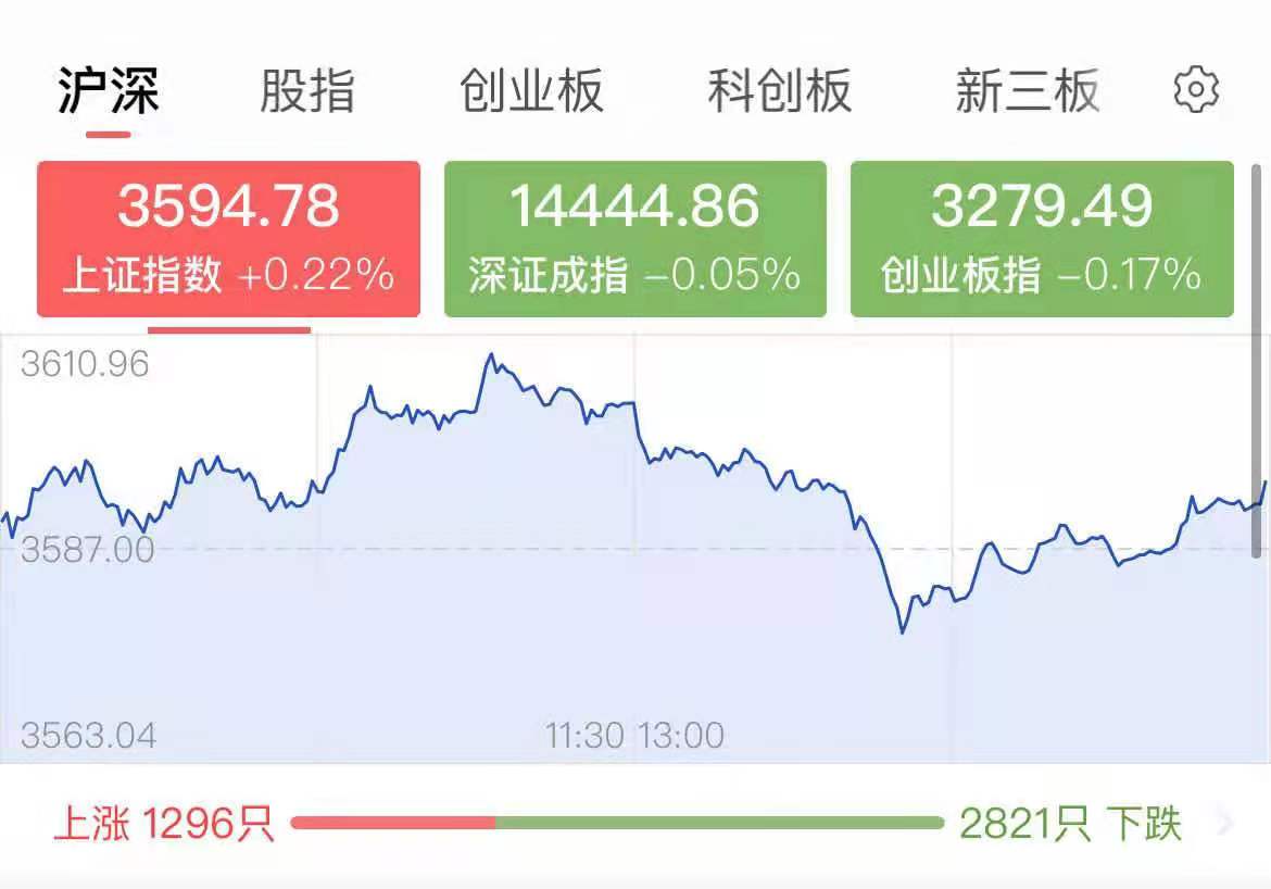 10月21日,A股三大指數(shù)表現(xiàn)分化,收盤漲跌不一。截至收盤,上證指數(shù)漲0.22%,報(bào)3594.78點(diǎn),盤中一度收復(fù)3600點(diǎn)。深證成指微跌0.05%,報(bào)14444.86點(diǎn),創(chuàng)業(yè)板指跌0.17%,報(bào)3279.86點(diǎn);滬深兩市成交額略有萎縮,合計(jì)達(dá)9929.75億元,總體來看,兩市個(gè)股跌多漲少。