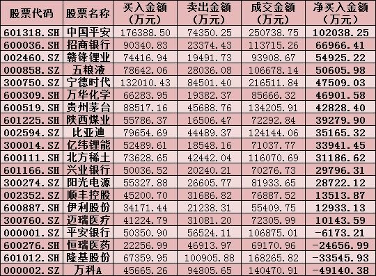 表:周四滬股通、深股通前十大成交活躍股交易情況:
