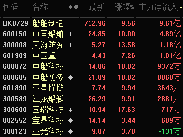 從資金流向看,國(guó)防軍工也成為最受關(guān)注的板塊。統(tǒng)計(jì)顯示,今日有3個(gè)行業(yè)主力資金凈流入,其中最大的行業(yè)為國(guó)防軍工,漲跌幅3.21%,整體換手率3.29%,成交量較前一個(gè)交易日增長(zhǎng)84.85%,主力資金凈流入19.19億元。