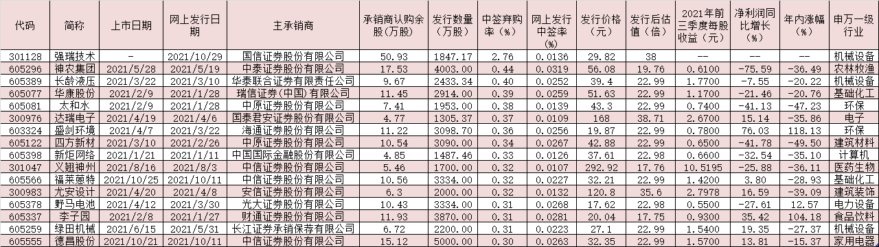 表:今年以來中簽棄購率超0.3%的上市新股一覽