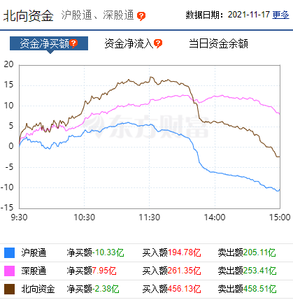 北向資金持續(xù)分化“賣(mài)滬買(mǎi)深”,11月17日,北向資金凈賣(mài)出2.38億元,其中,滬股通凈賣(mài)出10.33億元,深股通凈買(mǎi)入7.95億元。