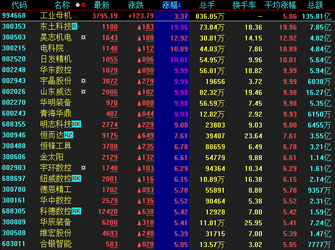 工業(yè)母機(jī)概念再度爆發(fā),包括東土科技、宇晶股份、青海華鼎等在內(nèi)的7只概念股漲停。