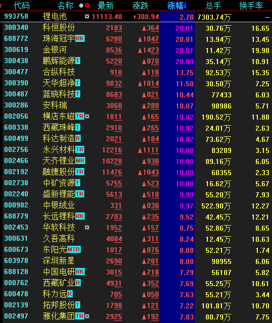 鋰電池板塊強(qiáng)勢(shì)拉升