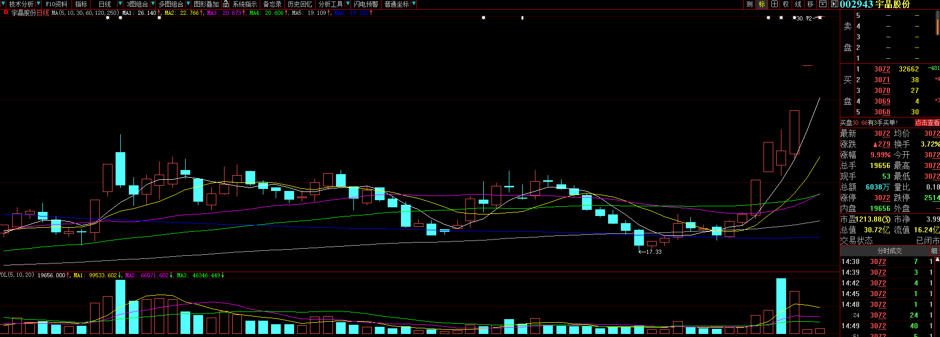 值得注意的是,宇晶股份在最近的6個(gè)交易日已斬獲5個(gè)漲停板。
