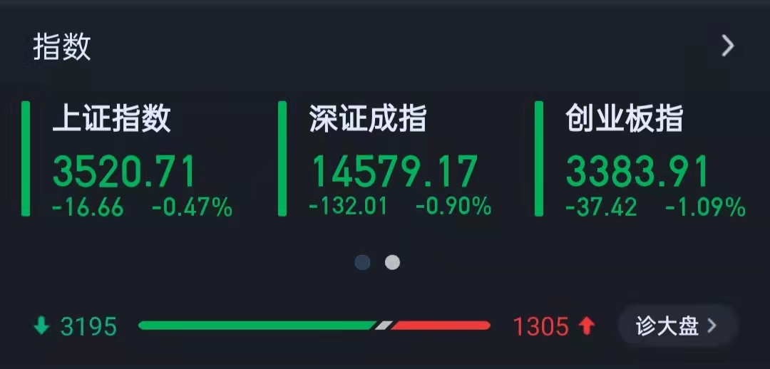 11月18日,A股三大指數(shù)弱勢(shì)震蕩,截至收盤,上證指數(shù)跌0.47%,報(bào)3520.71點(diǎn);深證成指跌0.9%,報(bào)14579.17點(diǎn);創(chuàng)業(yè)板指跌1.09%,報(bào)3383.91點(diǎn);滬深兩市合計(jì)成交額11243.25億元,連續(xù)第20個(gè)交易日突破1萬(wàn)億元;總體來(lái)看,兩市個(gè)股普跌,超3100只個(gè)股下跌。