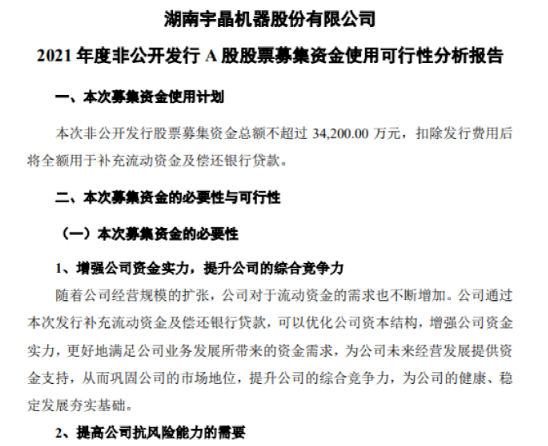 11月15日,宇晶股份公布,擬非公開(kāi)發(fā)行股票數(shù)量不超過(guò)2000萬(wàn)股,募集資金總額不超過(guò)3.42億元(含發(fā)行費(fèi)用),扣除發(fā)行費(fèi)用后用于補(bǔ)充流動(dòng)資金及償還銀行貸款。