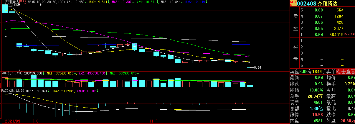 受到上述消息影響,今早9:25集合競價時,齊翔騰達(dá)被近20萬手賣單封死跌停板。截至收盤,賣單數(shù)超過56萬手。