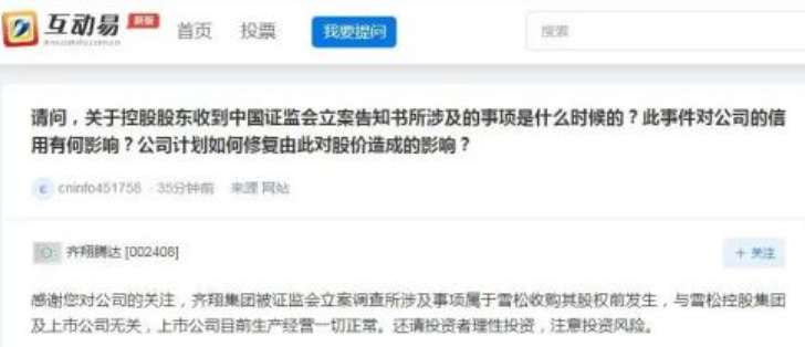 齊翔騰達(dá)表示,立案是對齊翔集團(tuán)的調(diào)查,不會對公司的正常生產(chǎn)經(jīng)營活動產(chǎn)生影響。在立案調(diào)查期間,齊翔集團(tuán)將積極配合中國證監(jiān)會的工作并嚴(yán)格按照監(jiān)管要求履行信息披露義務(wù)。