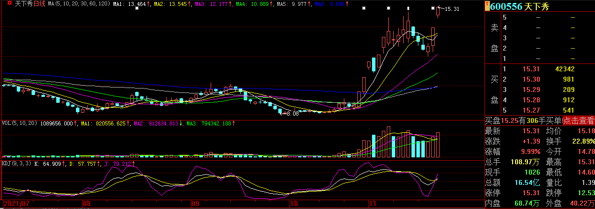 今日公司再度漲停,股價報15.31元。這要從公司董事長李檬發(fā)布了一封題為《面向下一個十年,讓連接更有價值》的公開信算起,天下秀股價已經(jīng)連續(xù)兩個漲停,最新總市值較11月17日收盤增長48.09億元。