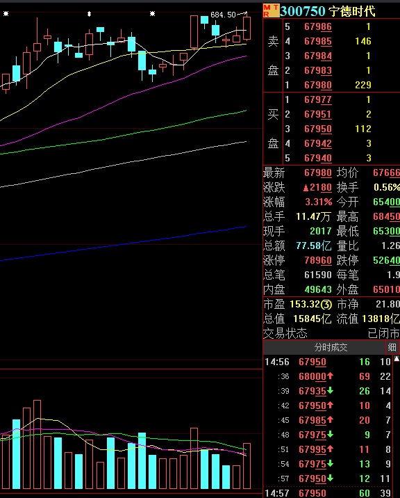與此同時(shí),周一,新能源概念板塊繼續(xù)向前沖。鵬輝能源20%漲停,德方納米漲近16%,遠(yuǎn)東股份、方正電機(jī)、金辰股份等紛紛漲停,新能源龍頭寧德時(shí)代盤中一度漲超3%,股價(jià)最高沖至684.5元,再創(chuàng)歷史新高。目前寧德時(shí)代市值逼近1.6萬(wàn)億元,排A股第三,即將超越工商銀行,挑戰(zhàn)貴州茅臺(tái)。有投資者測(cè)算,寧德時(shí)代2018年6月登錄創(chuàng)業(yè)板,彼時(shí)發(fā)行價(jià)只有30元左右,而今僅3年多時(shí)間,寧德時(shí)代股價(jià)已經(jīng)來(lái)到680元左右,投資收益率超2000%。