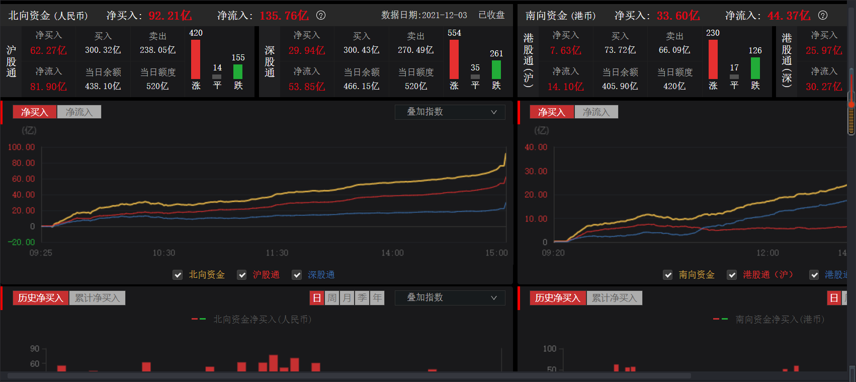 北上資金凈買入92.21億元,其中滬股通凈買入62.27億元,深股通凈買入29.94億元。